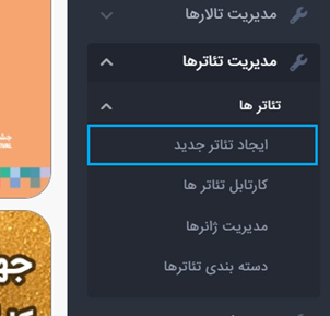 در این قسمت ابتدا گزینه تئاتر ها را انتخاب و سپس روی ایجاد تئاتر جدید کلیک کنید.