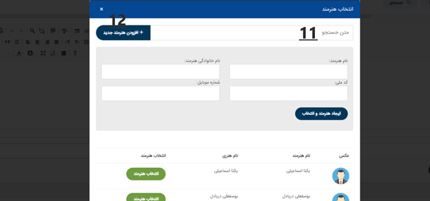 - نام کارگردان را در این قسمت جستجو کنید و روی گزینه انتخاب هنرمند کلیک کنید.