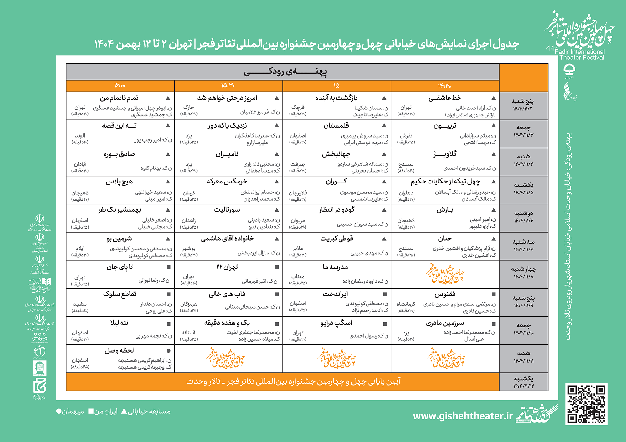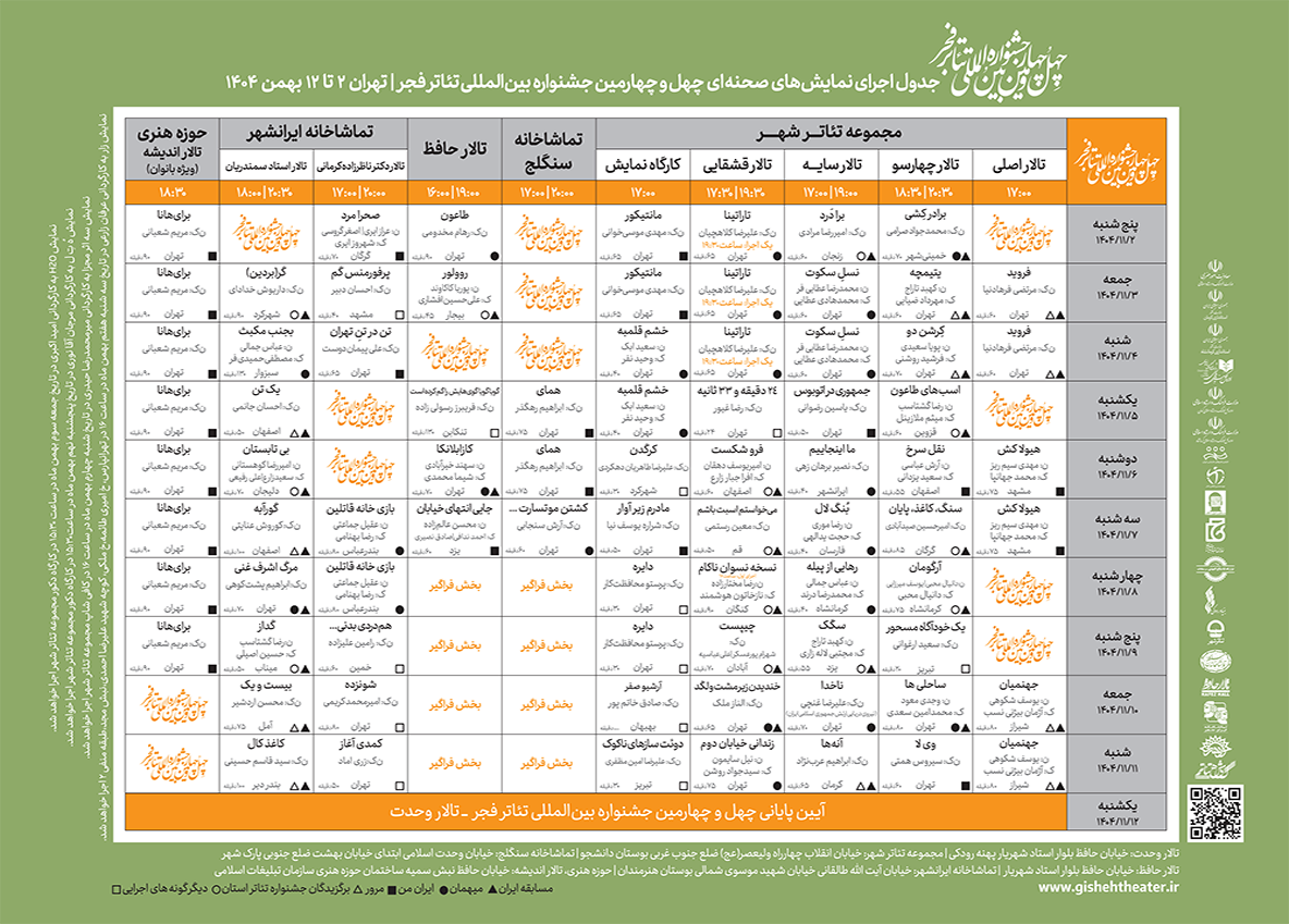 جدول اجرای نمایش های چهلوچهارمین جشنواره بین المللی تئاتر فجر
